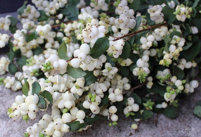 Обилие крупных белых ягод. Каскадная форма куста. Ветви подходят для срезки! Неприхотливый, компактный (до 1,2м), изящный каскадный густой кустарник с обильными, довольно крупными плодами в кластерах, которые рано появляются (с августа), буквально закрывают весь куст и держатся до зимы. Имеет белые плоды. Листва долго держится осенью.